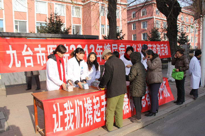 2013年11月14日是第二十二个世界糖尿病日,为了能够让许多糖尿病患者正确认识糖尿病,科学规范地进行治疗和控制,提醒更多社会人群关注糖尿病,普及糖尿病相关常识,我院发起了大型义诊咨询活动,并在九台市政府标志性建筑地点亮蓝光。义诊现场在九台市政府门前,前来就诊和咨询的人都获得了医务人员耐心细致、科学严谨的介绍,赞誉良多。