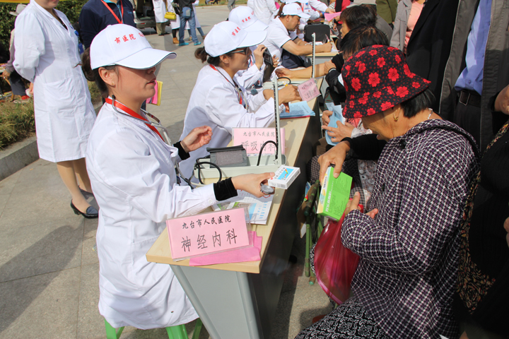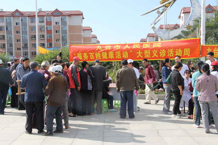 - 为进一步深入开展党的群众路线教育实践活动,根据国家卫生计生委、省卫生厅、长春市局关于开展“服务百姓健康行动”大型义诊活动周精神,2014年9月15日上午我院组织相关专业的专家,一行10余人来到“九台市福星广场”开展义诊活动,今日义诊活动是大型义诊活动周的首次义诊,主要普及医学常识和健康知识及免费发送宣传单、药品,推进了便民服务措施,不断提高群众满意度,提升了服务意识和服务质量,这种义诊活动我院将作为一种常态机制,继续运行下去,为九台域内的百姓健康保驾护航。