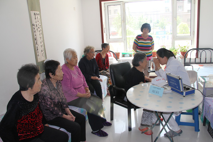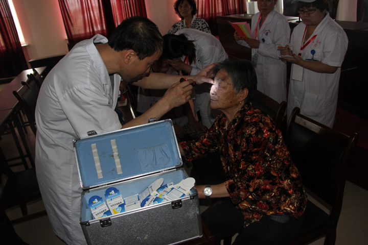 - 2015年为了推进养老机构志愿医疗服务工作,解决养老院看病难的问题,切实把养老院的医疗服务作为一项重要的民生工作来抓,在第20个全国“爱眼日”到来之际,结合”告别沙眼盲,关注眼健康”的活动主题。我院于2015年6月5日组织眼科专家,一行8人分别来到九台区社会福利服务中心和九台区颐养天年老年公寓开展眼科健康体检医疗咨询义诊活动。本次义诊活动的服务对象是孤、寡、智障或聋哑老人。参加义诊的医务人员克服部分老人交流以及不配合检查等困难,为全体老人进行详细的眼科相关体检。通过此次义诊活动,所有参加义诊医务人员心灵都受到了触动,都深深感受到这些特殊群体对医疗资源的需求。