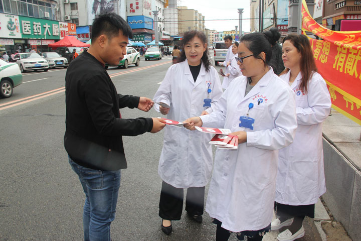 根据长春市卫计委“关于做好《献血法》实施20周年无偿献血相关工作的通知”要求,我院于2018年9月5日由输血科白茹副主任带领科室两名工作人员到街内进行无偿献血宣传。- 上一条: 献血屋参加义务献血